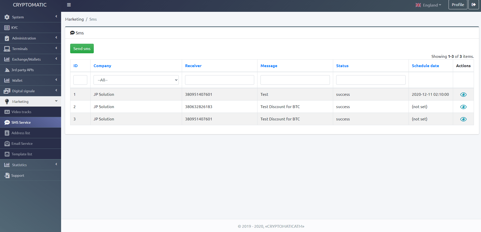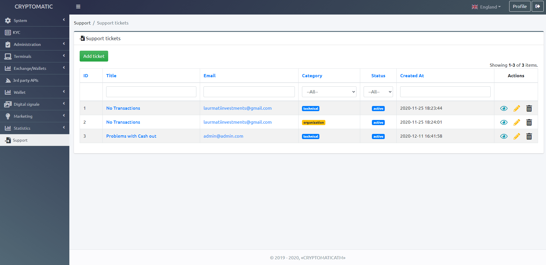 La solución de software CRYPTOMATICATM combina una amplia funcionalidad para administrar carteras y mercados de cambio, realizar pagos y proporcionar estadísticas y análisis de clientes. Produce informes que proporcionan datos sobre la funcionalidad y el estado del equipo.